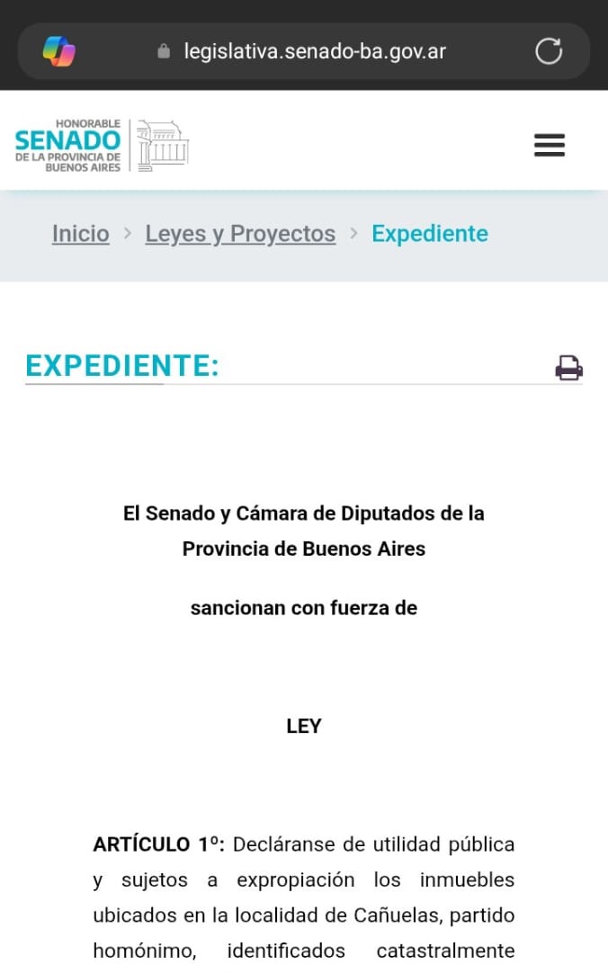 Al día de la fecha ARCHIVO DE IMÁGEN DE PÁGINA WEB (OFICIAL) DEL SENADO DE LA PROVINCIA DE BUENOS AIRES (2025) 02-10 EXPROPIACIÓN SOBRE TABLAS, 10-25 (EXPEDIENTE) SANCIONADO POR EL SENADO DE LA PROVINCIA DE BUENOS AIRES (11/2025) VER + NOTAS PUBLICADAS EN LA PÁGINA OFICIAL DEL SENADO DE LA PROVINCIA DE BUENOS AIRES (ORGANIZACIÓN TERRITORIAL + PRESUPUESTO E IMPUESTOS + CONSTITUCIONAL Y JUDICIAL) La Comisión de Organización Territorial y Vivienda avanzó con varios proyectos de utilidad pública El cuerpo legislativo trató distintas iniciativas que declaran de utilidad pública y sujetos a expropiación inmuebles en diversos distritos, tanto provenientes de la Cámara de Diputados como del propio Senado. El Salón…